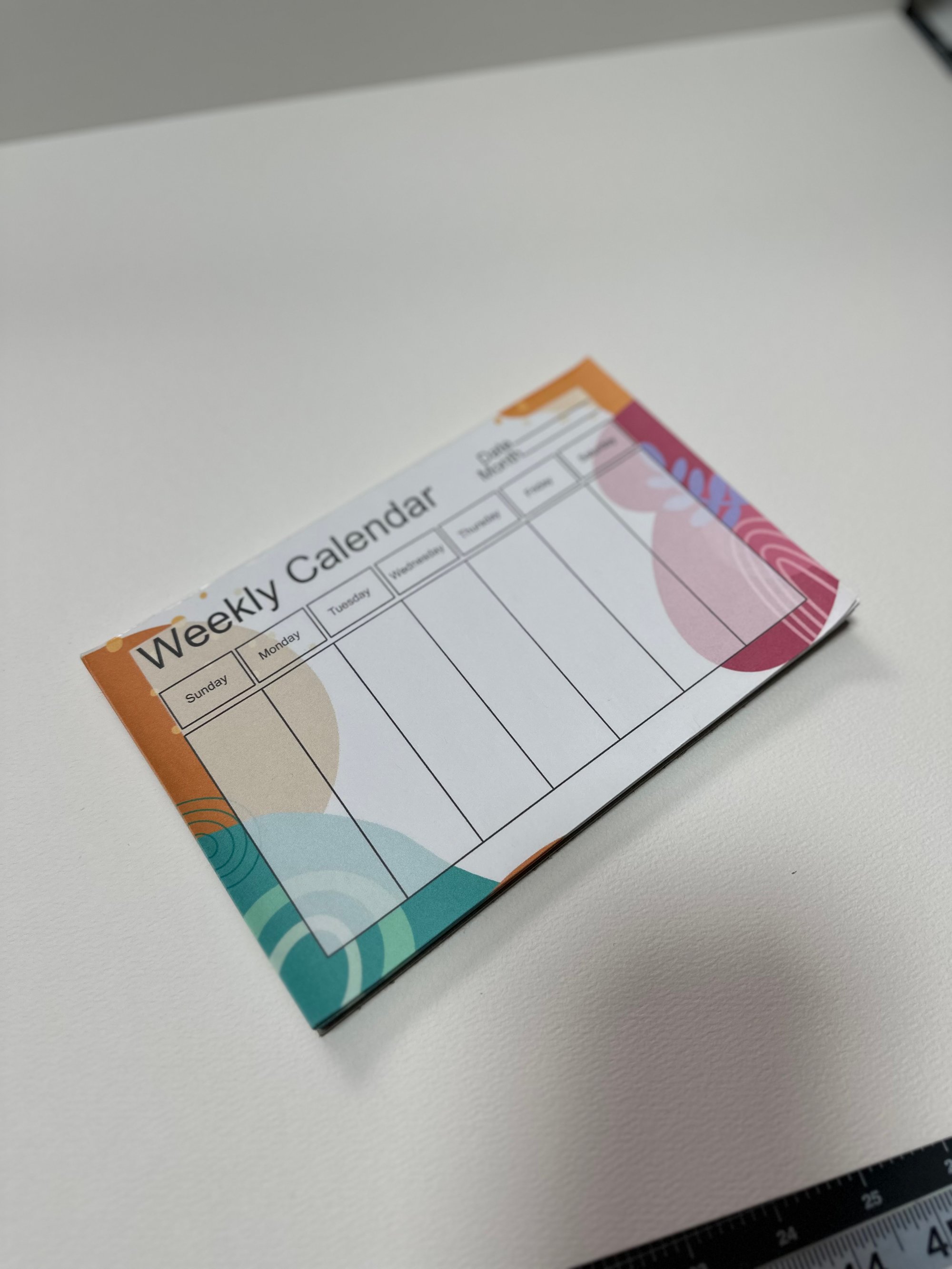 Discover the latest addition to my collection - the all-new calendars featuring my original artwork. These exclusive calendars are not only aesthetically pleasing but also functional with 52 pages, one for each week of the year. Made to order, each calendar is designed, printed, hand-cut, and bound by me, ensuring a unique and personalized touch to every piece. The magnetic back lets it lay flat or hang on the fridge, making it perfect for your home or office. You can even request a custom header and check out other pictures. If you're looking for a matching note set, I have that too in a separate listing. Please allow 5 days for handling and once the item is shipped, I will send you the tracking details.